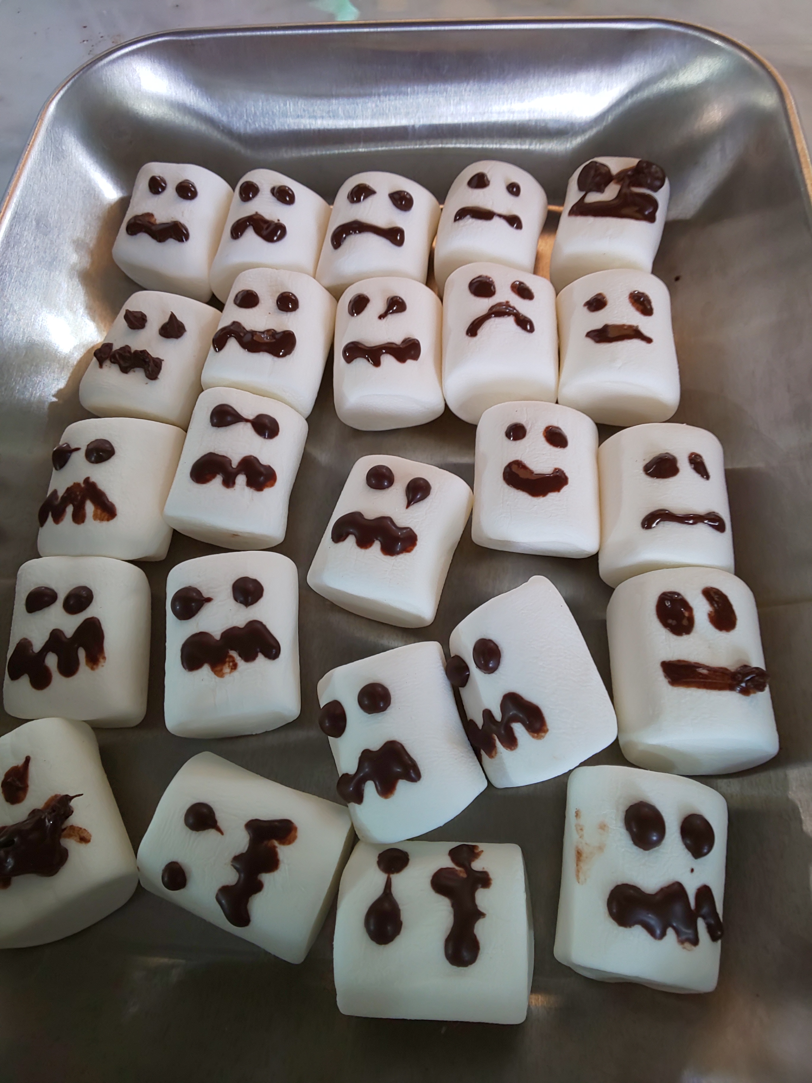 ココアパウダー、クッキーやチョコレート、カラフル金平糖、マシュマロなど