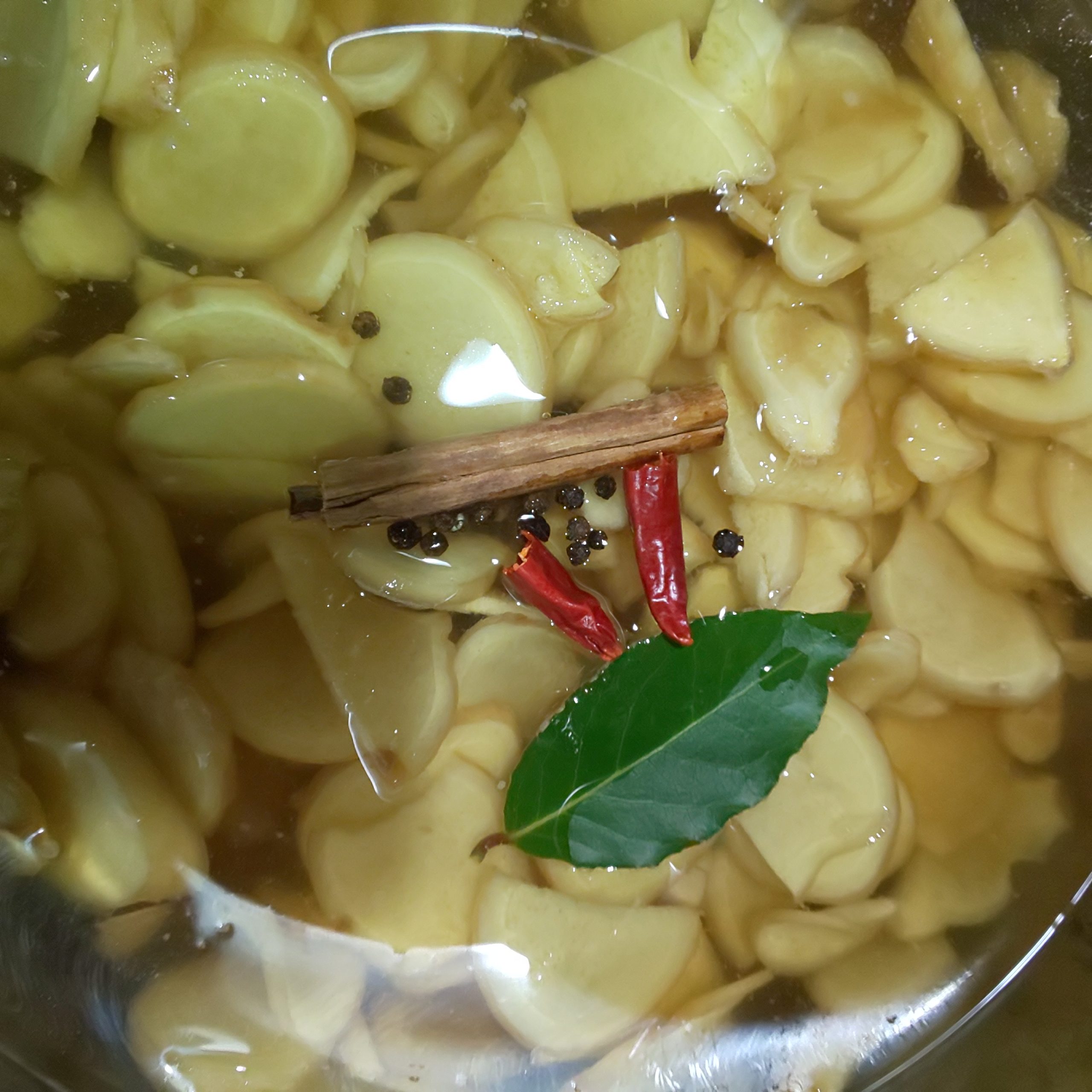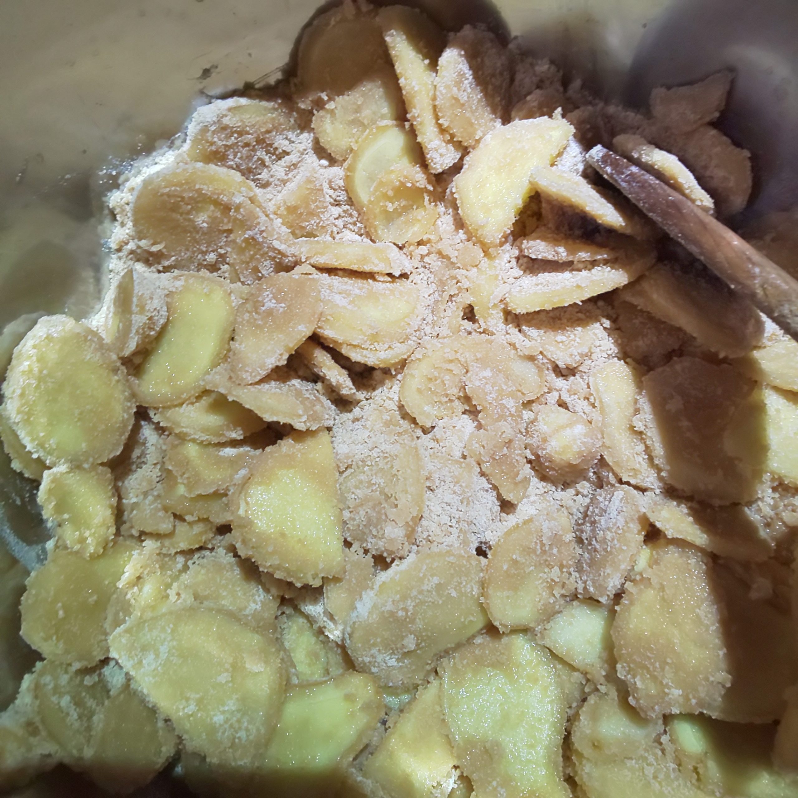 放置しておくと、生姜から水分や辛味がでてしっとりとしてきます。