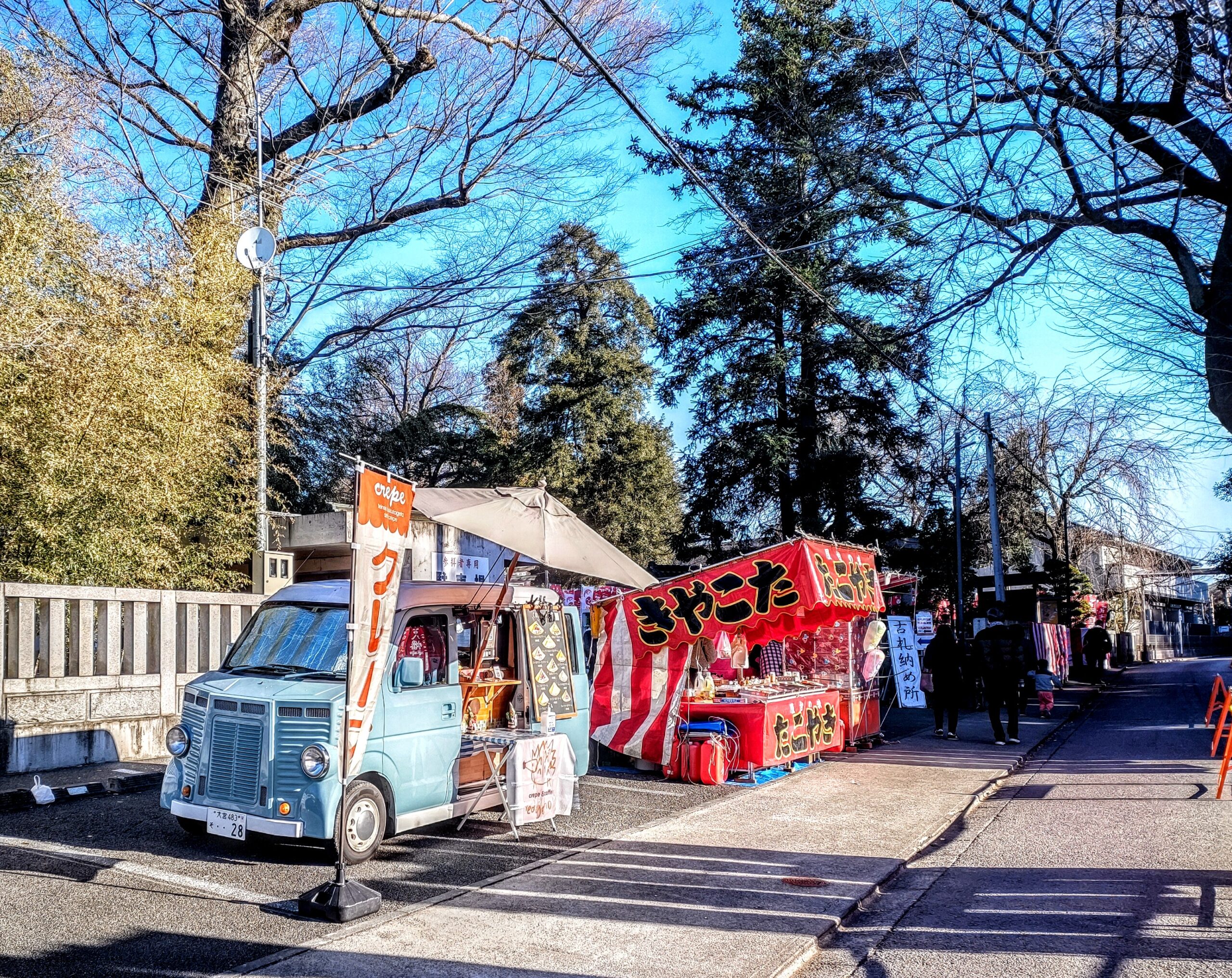 今年も、チョコバナナ屋さん、たこやき屋さん、わたあめ屋さんとご一緒に出店で初詣らしい景色。