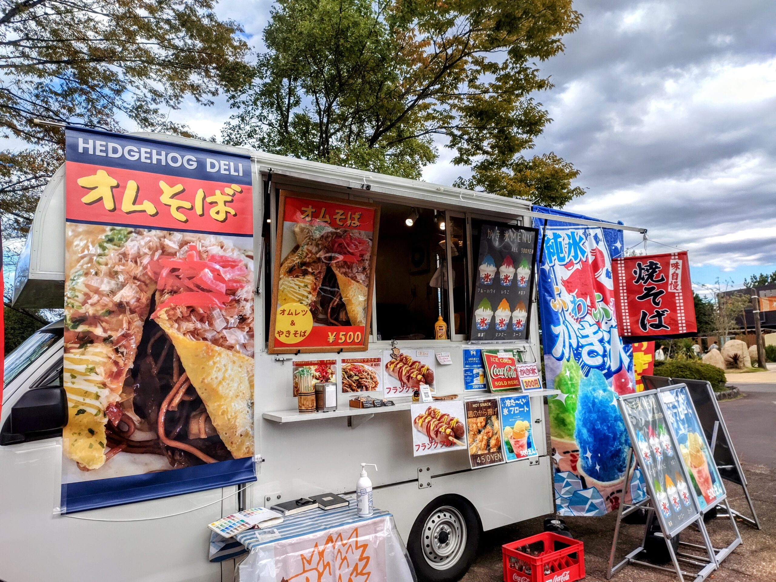 噴水広場の近くには常設のクレープ屋さんがあるので今回は焼きそば、オムそばをメインに出店してみました。