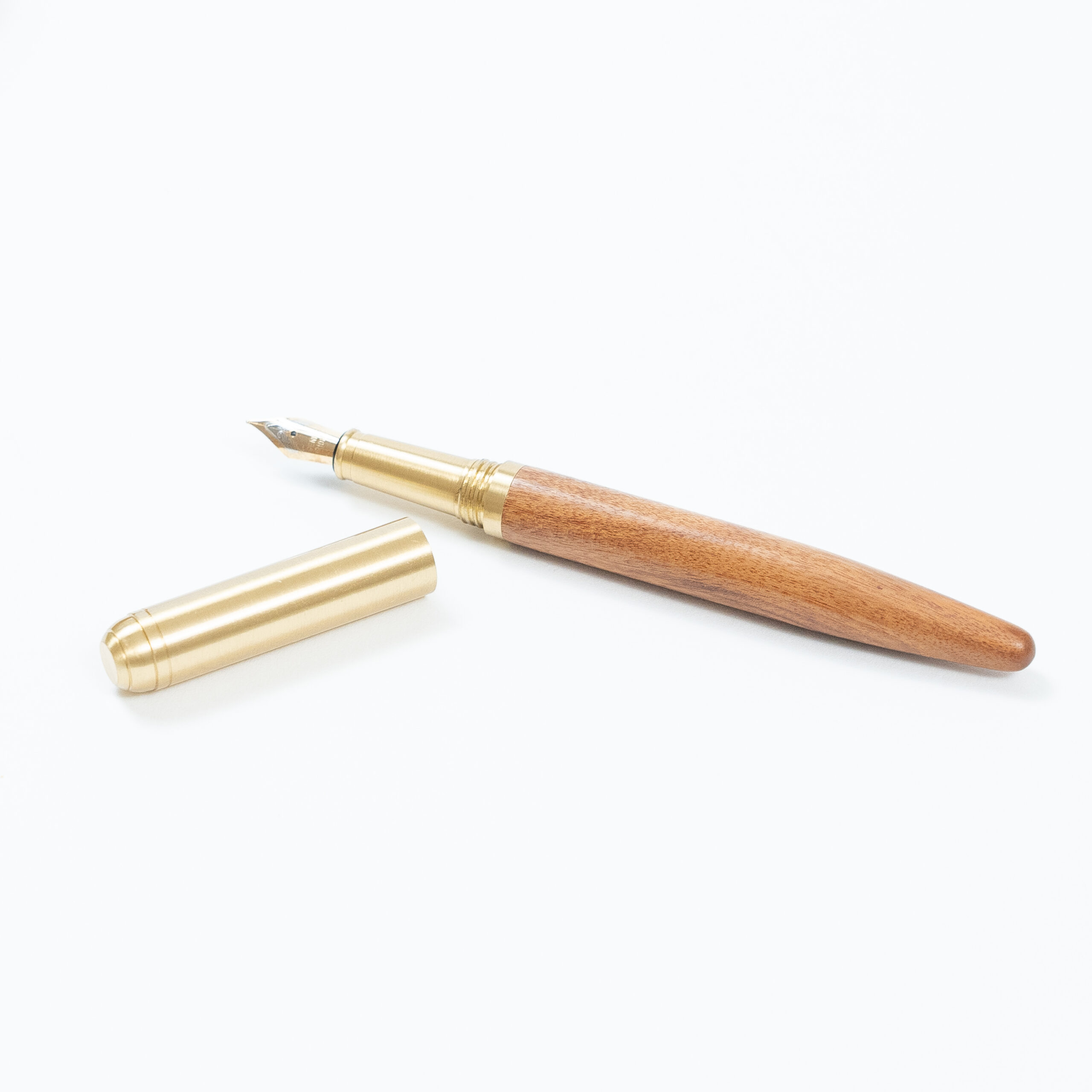 真鍮のゴールドと温もりのある木製が融合したおしゃれな万年筆も付いていますので、